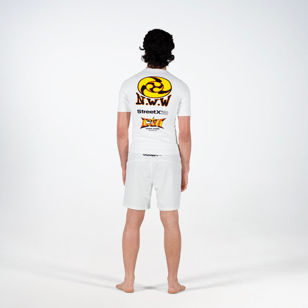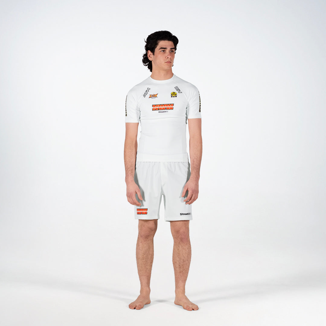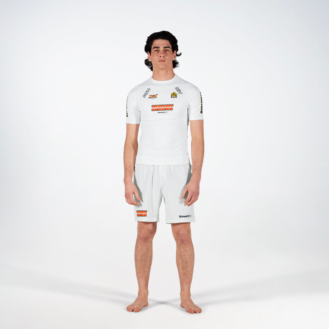 New Wave CJI Grapple Shorts – White/Black/Orange/Yellow